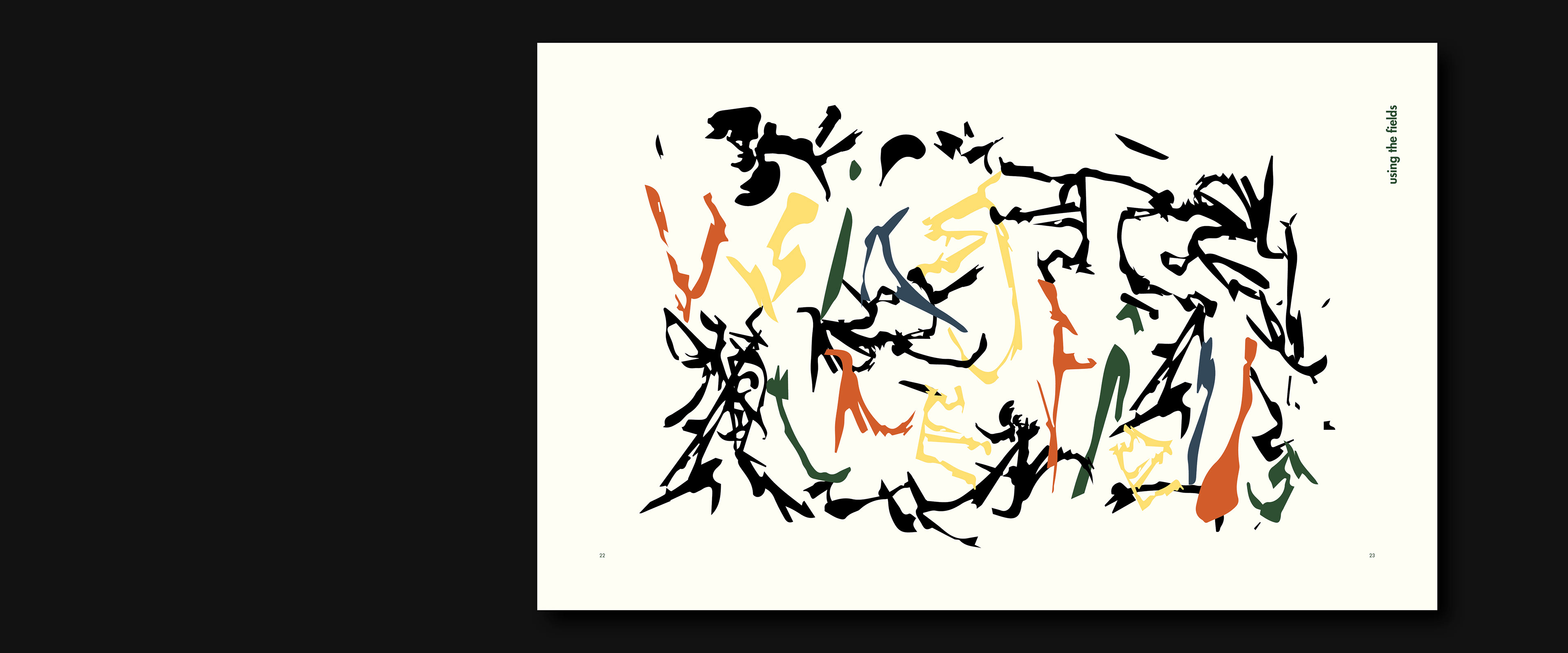 the book cover design as well as the majority of the pages utilizes the shapes outlined below. these were traced from the metal sculptural works of david smith and used to simulate typography. each individual chapter cover was inspired by smith’s painting and stencil works.